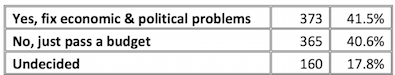 This is the kind of poll that irks me and shows the limitations of a poll. These folks can say what they want about cutting services and so forth, but they’re not being asked to identify which services they want to have cut so this poll is basically as empty as campaign promises.