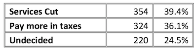 “In order to fix the budget, would you rather services be cut or pay more in taxes?”…