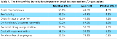 Finally, a public sector respondent stated, the “impasse has stopped state employees from traveling to the capitol.”