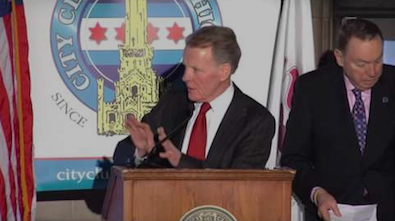 Paul Green thought bubble: “This is the City Club of Chicago–I can’t say the things in this question submitted by Goldberg!”