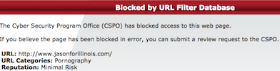 JasonforIllinois.com comes up as his campaign site on my android phone. Whassup with that blocker?