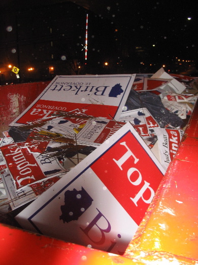 Topinka actually had signs left over? Wonder why I never got one for my yard even though I asked 6 weeks before election day…that’s just funny.