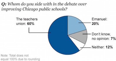 In households with CPS students, 73 percent supported the teachers union while 14 percent backed Emanuel. In homes without CPS students, 57 percent sided with the CTU compared with 22 percent with Emanuel. […]