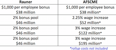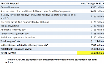 Of all the dumb things. The only thing that matters is the relative difference between Rauner’s position and AFSCME’s position, which from the wage comparison does not look like it approaches half a billion let alone $3 billion.