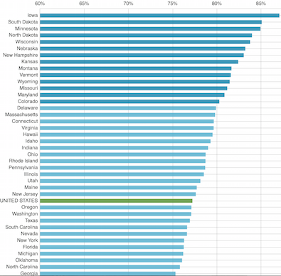 Make sure to hover over the bar and see the trend over time. Illinois has a u-shaped curve and rates are still rising, not declining as it might appear.
