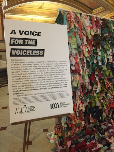 When words have failed to break the state budget impasse, social services providers and young artists are turning to another tactic – art. On behalf of the Illinois Collaboration on Youth (ICOY), a statewide network of organizations delivering programs, services and advocacy for at-risk youth and families, I wanted to let you know that artists from Chicago will take to the Capitol Rotunda on Wednesday, March 2, with tapestries and paintings that illustrate the damage from the ongoing deadlock. We’d love for you to take a look and speak to provider organizations, advocates for youth programs that are being cut, and artists themselves: all will be in the Rotunda from 8am-11am.