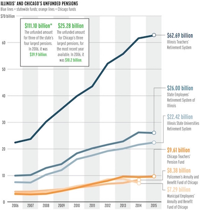 Need a companion chart showing how much money Illinois taxpayers saved (compounded) over the years as the State as employer skipped and modified its pension contributions in order to keep a 3% state income tax rate for 20 years. But the piper has to be paid as some point.