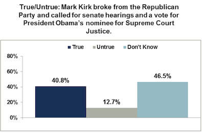 * The claim that Illinoisans know about Kirk’s position on the Supreme Court issue is only partially true. A large plurality believe he did show independence, but even more don’t know…