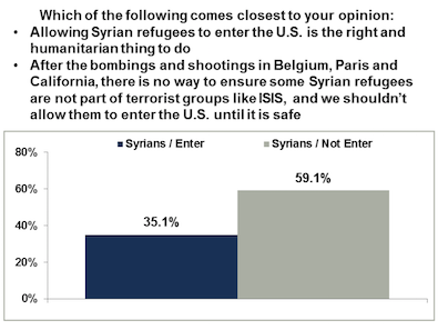 The question on Syrian refugees is hardly an objective question. It references the terrorist attacks and is based on the premise that refugees are not vetted. I don’t think the question can accurately measure the topic.