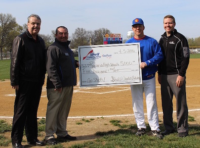 Shell Community Federal Credit Union donated $5,000.00 to Roxana High School to aid in funding a new scoreboard for the baseball field. Representatives from Shell Credit Union participated in the dedication of the scoreboard last week.