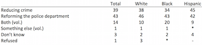 “…thinking about Eddie Johnson, Chicago’s new police superintendent, do you think it is more important for him to focus on (reducing crime) or (reforming the way the police department operates)?”