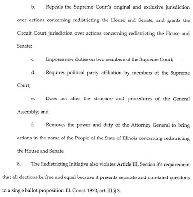 Judge Mary Mikva’s ruling rejected most of these arguments (while agreeing with others that killed the last redistricting initiative). http://redistricting.lls.edu/files/IL%20clark%2020140627%20opinion.pdf