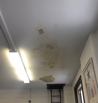 There obviously is (or WAS?) a hallway ceiling problem likely due to a roof leak. Has the roof leak been fixed? If so, when is scraping and painting scheduled? Things happen, and responsible management fixes them. You can’t just wave a magic wand, Master Voldemort.