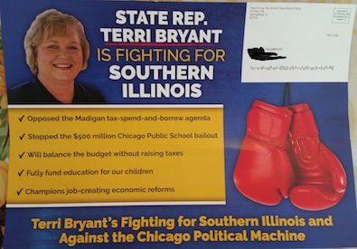 Terri Bryant will not fully fund education for our children. She has done a terrible job advocating for the SIU community, and to some degree the JAL College community, which makes up a large part of her constituency. This campaign mailer is a joke.