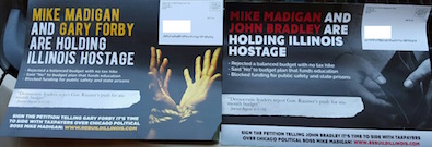 Not only do I throw flyers like these directly into the recycle bin…I deduct a point for mentioning a politician that is not on the ballot in the district in question. As in….Madigan is not on the ballot in Southern Illinois. This year, I’ll deduct 5 points if you mention Trump.
