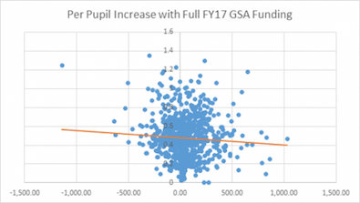 I’m not a supporter of the current formula, but the graphs are a bit misleading. Poverty level isn’t the only thing driving state resources to schools under the current formula or proposals out there this year. Local wealth is a factor in everything, and doesn’t necessarily change proportionally with poverty levels.