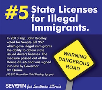 Coming in at #5 is Rep. John Bradley’s vote to give illegal immigrants state issued driver’s licenses.