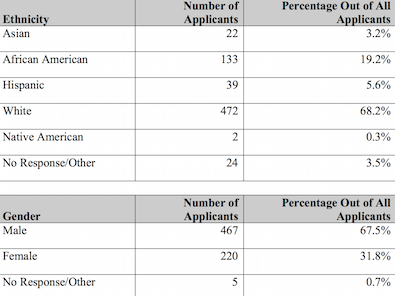 So, there was a slightly higher percentage of white, male applicants who were eventually appointed vs. those who applied.
