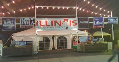 …Adding… I meant to post this, too, but somehow forgot. Notice anything missing from the front of the ILGOP State Fair tent?…