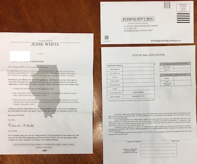 * Speaking of DPI, the state party has started its vote by mail program this week with a letter from Secretary of State Jesse White, a form and a postage-paid return envelope…