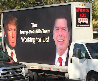 That McAuliffe ad truck is owned by a hardcore GOP guy named Brian Younker. Maybe friendly fire?