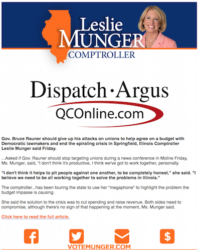 As we’ve already discussed, after that e-mail went out Munger reported receiving a million dollars from Gov. Rauner’s personal checking account.