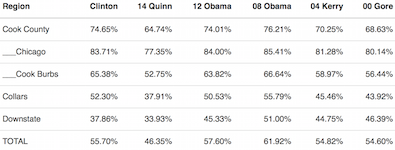 The results in DuPage are interesting. I imagine this has more to do with a Trump candidate, than the actual politics in DuPage shifting more center/left. Thoughts?