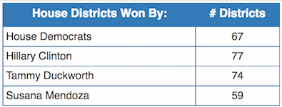 Topinka (14) won by 4 points statewide and won 69 House districts.