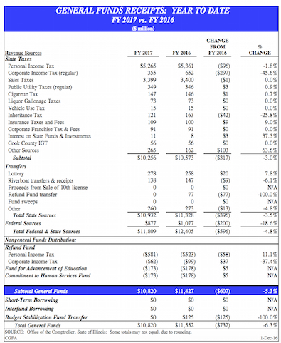 –Tax Rates are the same during comparison period. If revenue is down it’s because Illinois is on life support in terms of the business climate BUT don’t tell that madigan.–