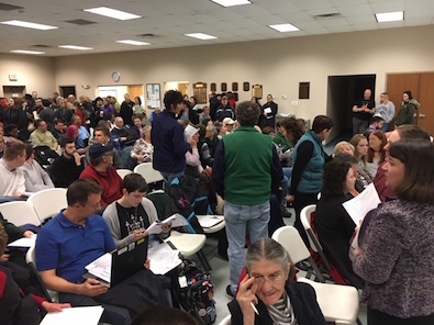 Unbelievable turnout in Bloomington last night for the third BloNo area Indivisible training. People were sitting on the floor in multiple rows, people were standing along every wall. People came from Pontiac and rural McLean Co.