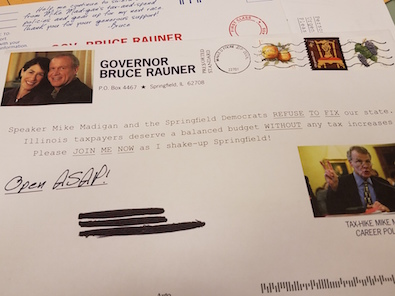 * Remember yesterday when we talked about that Bruce Rauner campaign fundraising letter wherein the governor says taxpayers “deserve a balanced budget without any tax increases”?