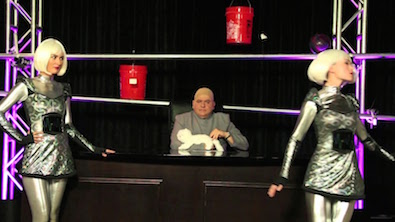* Pritzker is dressed as the Dr. Evil character from the “Austin Powers” movies in his video, stroking a toy cat and wearing one of those bald wigs. The reporter who watched the video says Pritzker talked in a Dr. Evil accent while cheesy, 70s style sound effects played in the background. From a story done at the time by Shia Kapos…
