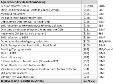 * Here’s where the cuts/reductions/transfers are. SB 6 is the approp bill. All numbers are in millions. From the Senate Democrats…