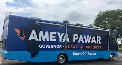 “Ameya Pawar, candidate for governor, driver of the Winnebago… “