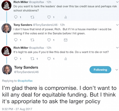 I’m guessing here that some think if they can kill the deal with the scholarship tax credits, enough GOPers will join for a House override of the SB1 veto.