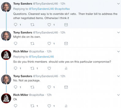 * Meanwhile, the CEO of the state’s second largest school district (Elgin) was bad-mouthing the compromise plan and demanding an override of SB1 on Twitter yesterday, so I asked him some questions…