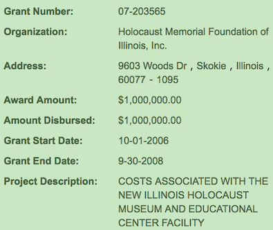 “Four days later, Blagojevich announced the state grant to the holocaust museum, according to a news release.”