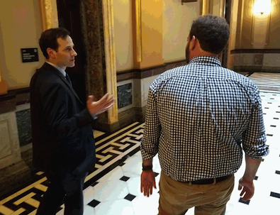 “When we round the corner to the Lt. Governor’s office, please do not make eye contact with the man, Alex Hirsch, that has been standing for the past week in the hallway, staring forlorningly at the office door.”