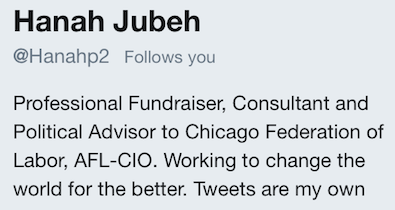 The tensions between Jubeh and her one-time friends and allies erupted into public view this week. In its newsletter published Tuesday, the Illinois AFL-CIO — which has endorsed Pritzker — took a highly unusual cheap shot at Jubeh.