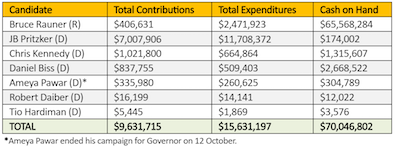 Everything about this article is whats wrong with the campaign system and why we need campaign finance reform now. There is so so much money being injected into campaign while the State of Illinois fails at so many other areas. At the end of the day, the most qualified person should win, not the person who spends/raises the most money.