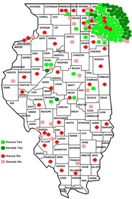 Notice how almost all downstate legislators representing districts that border other states voted “No.”