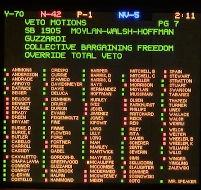 * Meanwhile, this gubernatorial veto was also overridden with 80 House votes, down from 91 when it originally passed. It now moves to the Senate, where it received 35 votes (one vote shy of an override, but some Dems were missing) in May…