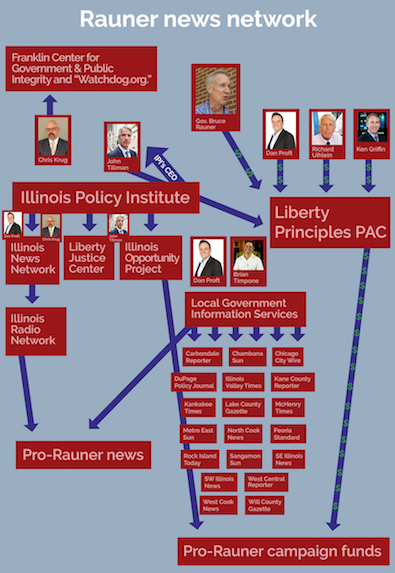 What readers get is a strong pro-Republican, pro-Rauner, anti-Michael Madigan slant manufactured by the interlocking group of media organizations revolving around the free-market, anti-tax, anti-union Illinois Policy Institute (IPI).