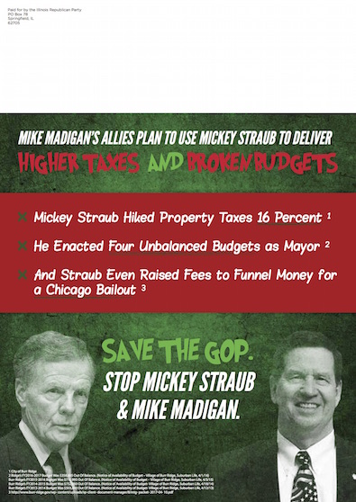 * The ILGOP also has a holiday themed mailer blasting Durkin’s rival Mickey Straub…