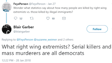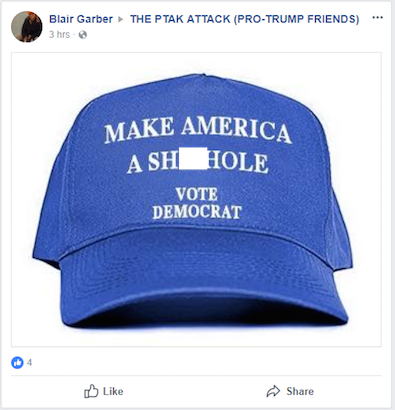 Garber’s conduct is also not comparable to the President’s. First of all Trump denies he used that word, and more than one in the room has backed up Trump’s account. But whatever Trump said, it was in private and intended to stay private. Garber is so reckless and has such awful judgment that he’s voluntarily barking his buffoonery on the world wide web. Bye bye Blair.