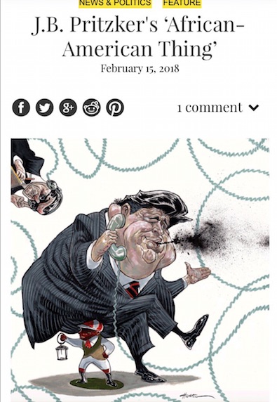 * The mag also published another piece by Adeshina Emmanuel. The first one, entitled “Pritzker the sneak disser might as well have said the N-word,” is here. And this is the part of the new one…