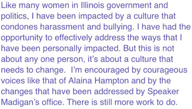 Sexual harassment in the campaign staff of the Democrat Party Chairman. A culture of wide spread sexual harassment in Springfield. A culture at the ward level that attempts to dig up dirt on a victim.