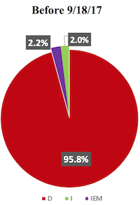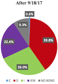 Before 9/18/17, D-Bonds [defendant has to post 10 percent] for felony gun charges were administered at a higher rate with higher bond amounts than after 9/18/17. Before 9/18/17, No Bonds, IEM [no cash, but electronic monitoring], and I-Bonds [released on own recognizance] were rarely administered for felony gun charges. After 9/18/17, the use of No Bonds, IEM, and I-Bonds increased dramatically.