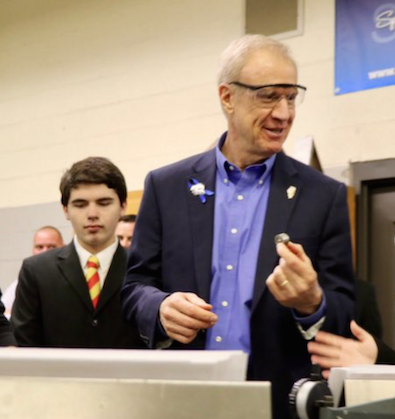 That was supposed to be reading the mind of the young man who is on Rauner’s right.