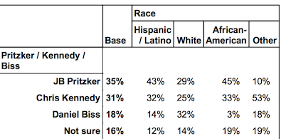–Can some Biss supporter please tell me how Biss wins the primary with no African American support?–
